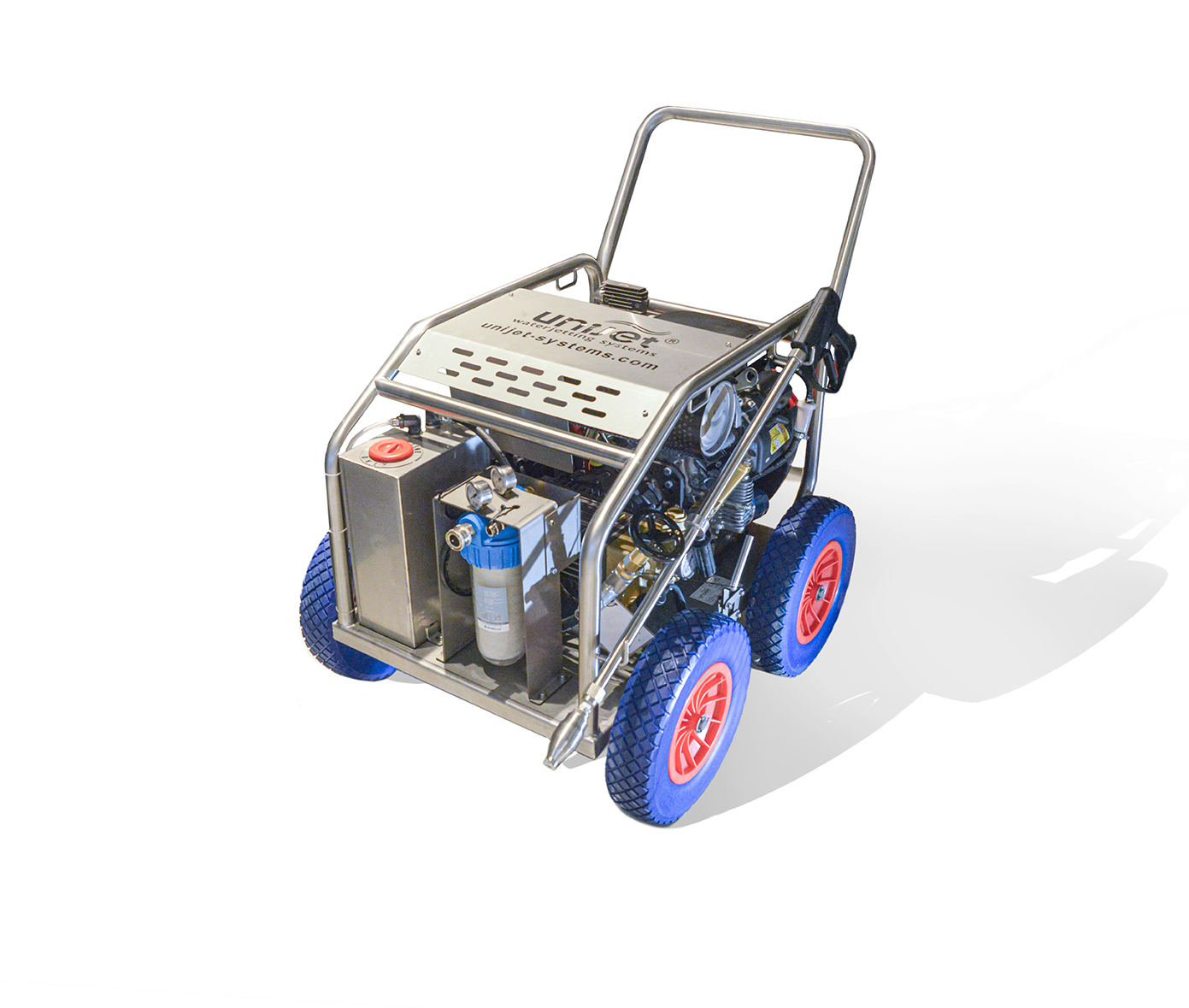 Συστήματα υδροβολής με δυνατότητα υδροαμμοβολής και ζεστού νερού έως 500 Bar, με κινητήρα βενζίνης , κατάλληλο για το Ναυτιλιακό, Βιομηχανικό και Κατασκευαστικό κλάδο.