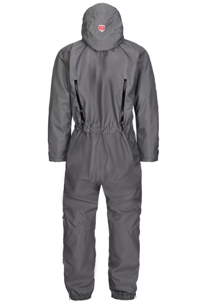 • Waterproof zippers at the bottom of the legs allow the overall to widen to facilitate donning the boots.